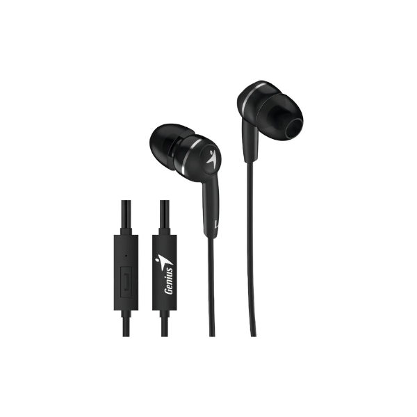 Auriculares Genius HS-M320 in-ear con sonido claro, micrófono integrado y botón para llamadas. Compatibles con conector 3,5 mm. Cable de 1,1 m, ligeros y cómodos.